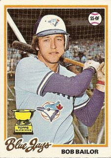 In fact, Bailor was the very first pick of the Blue Jays in the 1976 expansion draft, the best of the entire flea market heap except for Ruppert Jones, who was the first pick of the other expansion team, the coin-flip-winning Seattle Mariners. This photo, adorned with the rookie-team trophy, shows Bailor just after he has ridden the slow, low-tide, styrofoam boogie-board wave of expansion draft acceptance to a mildly successful season, the utility man somehow amassing enough bloop singles to hit .310, a mark he would never again come close to. The faintly troubled expression on his face seems to imply that he may on some level understand that his best days are already behind him.