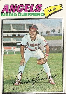 This 1977 card signals the passing of the halfway point of both my childhood and Mario Guerrero’s itinerant career. Early in the preceding season, Mario Guerrero was traded by the St. Louis Cardinals to the California Angels for a minor leaguer named Ed Jordan and a player to be named later. The player to be named later turned out to be another minor leaguer named Ed Kurpiel. So by the time he posed for this picture, Mario Guerrero had been a player to be named later, had been traded for a player to be named later ultimately named Willoughby, and had been traded for two minor leaguers, one named Ed right at the start, the other also named Ed, but later. Still, Mario Guerrero seems happy and hopeful here. This makes sense, in a way. Despite his constant involvement in trades seemingly designed to highlight his insignificance, he had proven himself to be a useful major leaguer, averaging well over 200 at bats a year while playing ably at second base and shortstop, arguably the two most important defensive positions on the field. He had, in fact, just completed his best season to date, leading the anemic, league-worst offense of the Angels in batting average with an admirable .284 mark while also somehow swatting his first major league home run.