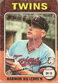 Anyway, while the specific contours of most of my long ago baseball card daydreams are lost to me, I do remember the draw this wilkerized 1975 Harmon Killebrew had on me. There were three reasons why I kept going back to it, handling it, memorizing it, gradually making it begin to disappear: