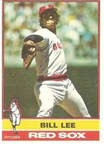 September 7, 2010On the back of this 1976 Bill Lee card, there’s a cartoon featuring a stooped, white-bearded old man in a baseball uniform, using a baseball bat as a cane. Though the cartoon is about a legendary old-timer named Jim O’Rourke who played pro ball into his golden years, it seems now to be a bit of cosmic foreshadowing about the fiercely focused young man depicted on the front of the card in a photo taken during the 1975 season, when Bill Lee won 17 games for the third season in a row and helped lead his team to the American League pennant.