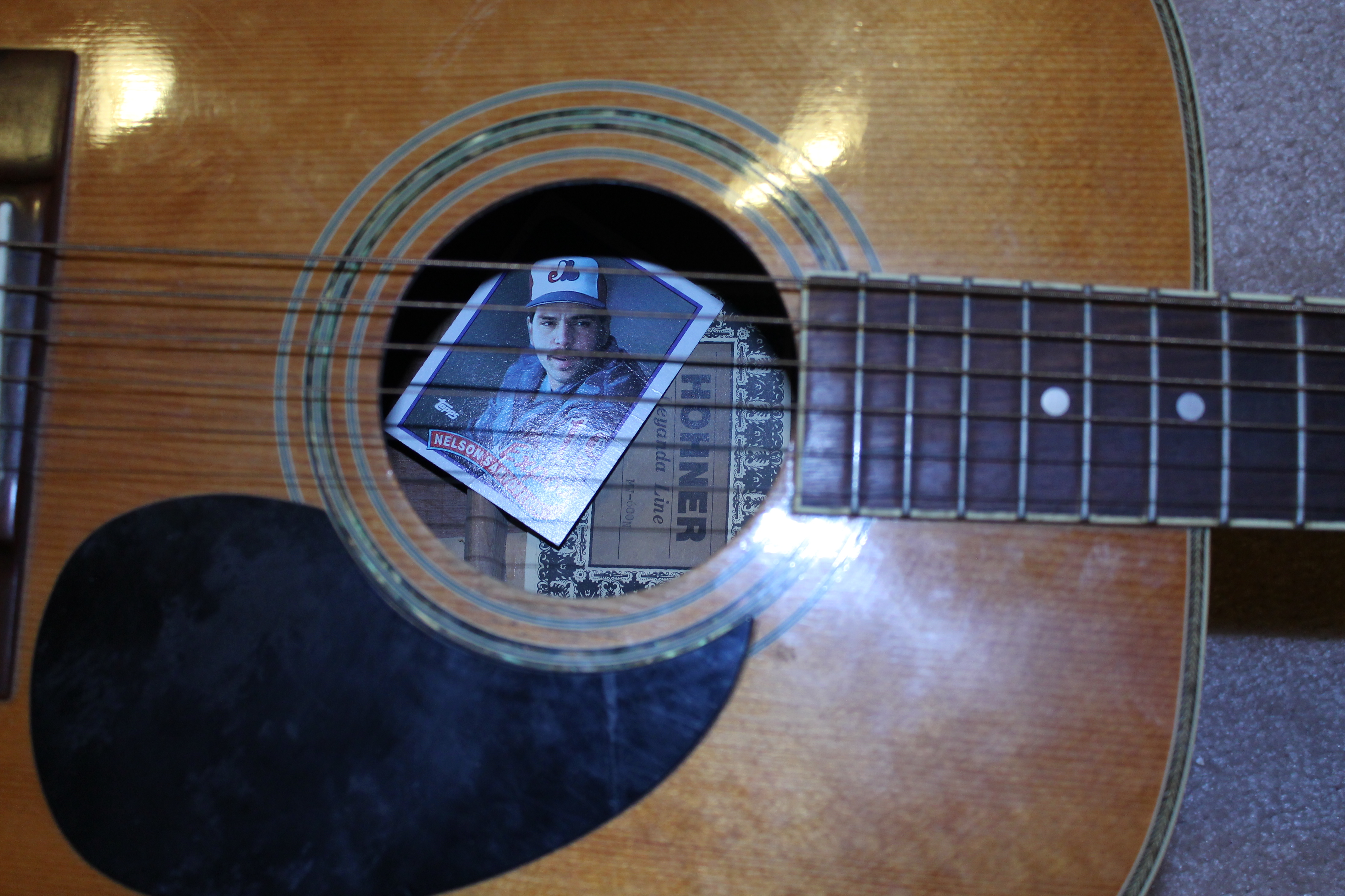 But baseball cards are still in my life, more actively now than at any time since my childhood. They belong to my son, a heaping pile of loose cards, some new ones from 2012 and 2013 and some older ones that came as a gift to me from my wife’s aunt, who found the cards in a binder at a garage sale. They’re all from the late 1980s and early 1990s. My wife helped me remove them all immediately from the protective plastic of the binder, and we piled them on the living room rug like leaves, where our son Jack started doing something very much like the breaststroke through them. Then, the diaspora: the cards were gradually scattered all over the house. This is how things get sorted now, through play. I find a card in the bathroom, another on the cat scratch pad. A favorite site for cards is my guitar. Jack likes dropping them in there. He can’t say guitar yet, but he makes a sound that approximates the sound of a guitar being strummed. “Dao,” he says when he wants to play with the guitar, the same way you’d pronounce the Chinese philosophy of embracing the randomness and transience of life. He said this the other day, and when we got to the guitar a backup catcher from a defunct team was inside. Oh, to live inside music, holiness itself. Oh to be an Expo forever, free of the sorted world.