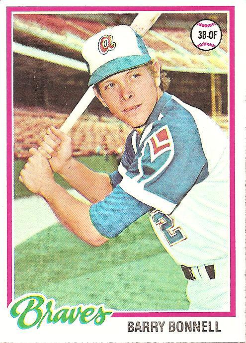 As of a few weeks ago, I had only a handful of 1978 Atlanta Braves cards—the Bobby Cox card that has now been featured twice on this site and these three repeaters. All the other Braves came to me recently courtesy of Joe Stillwell of STATS, who’d read my past complaints about the mysterious disappearance from my childhood card collection of almost all my Braves and sent me most but not all of the 1978 team. I didn’t notice any absences at first but when I did it made me happy, in that it made the influx of Braves into my collection more realistic. I never got all the cards for any team, so it’s fitting that there are gaps in my collection of 1978 Braves.