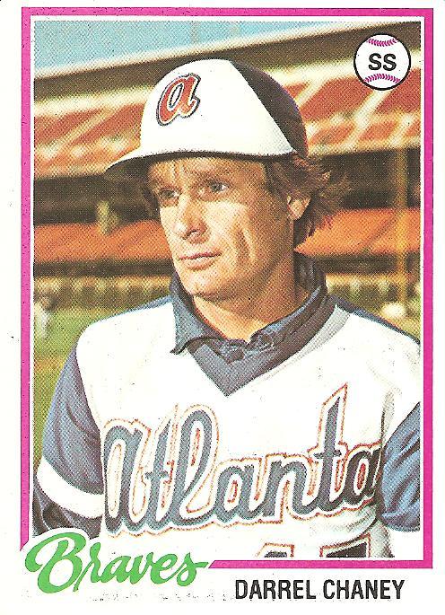 Every day for the last week or so has been ruined by this fucking card. For me, a day without writing something with at least a hint of life in it is a useless day. This attitude is defective, I know. I try to start every day with at least a stab at gratitude that I’m still among the living and among my loved ones, the idea in this sort-of prayer to see that everything beyond those basics is gravy. But if I can’t write I get tangled up and thinned out and mean. So fuck you Darrel Chaney and your fucking worried glance perhaps over at the shenanigans of teammates on a team that, unlike your former squad, the Reds, has no hope for victory. I blame you for not pulling anything out of me but the worst self-absorbed spiritually bankrupt tripe day after day. It’s gone on for so long, the slump, that I have given up on ever having a decent idea again. I am through. I have swung and missed so many times in a row that I’m being given my release. I will continue to write out of sheer stubbornness, but the writing will be so horrifically bad that its only use will be to read aloud to torture suspected terrorists. I hate you, Darrel Chaney.