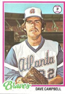 Dave Campbell had a good year in 1977. In fact, on the back of this card, Dave Campbell is referred to as an “artist”: “Dave was the Braves’ top bullpen artist of 1977.” All things must pass. If Dave Campbell was called upon at the start of 1978 to continue being the team’s primary reliever, he didn’t last very long in the role and managed to record just one save the entire season. With the season underway, the Braves traded for Gene Garber, who would be one of the few bright spots for the 1978 team. Garber saved 22 games in all, and finished a team-high 36 games. Campbell was right behind him in the latter category, with 35 games finished, and it stands to reason that many of those 35 games finished were lost causes. Dave Campbell, former artist, had been demoted to mopup man. He didn’t pitch in many crucial situations, but because the Braves’ season had fewer such situations than a good or even a mediocre team, Campbell got plenty of chances to pitch, logging the second-most innings (after Garber) of any of the pitchers used strictly in relief. In the last game of the 1978 Braves, an extra-inning slugfest caused the team to cycle through most of their other bullpen options, including Gene Garber, and Dave Campbell entered the action in the thirteenth inning with the score tied.