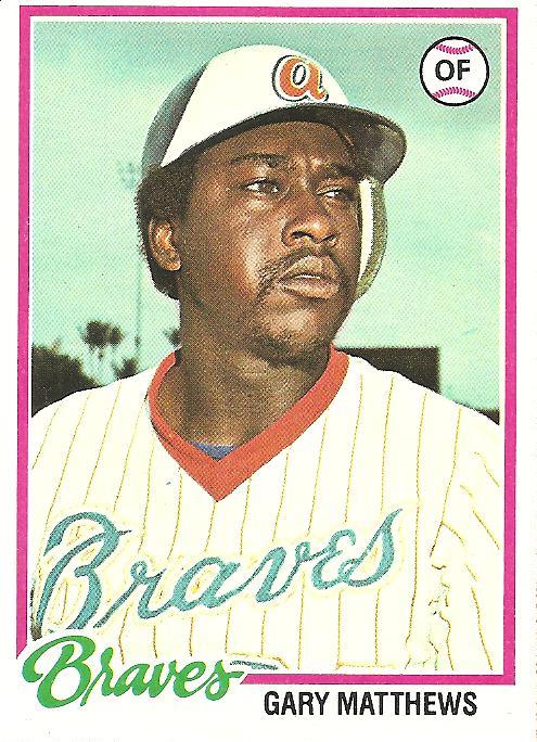 But it wasn’t Gary Matthews’ fault that he landed on a flimsily legitimate baseball card in the ill-conceived uniform of a team on the very edge of the major leagues. For his part, the former Rookie of the Year and future National League Championship Series MVP was a veritable prototype of solidity, almost guaranteed throughout his 16-year career to post good but not great numbers in home runs, runs scored, RBI, on-base percentage, slugging percentage, and steals. In the 1978 season he would be the Braves’ second-most productive hitter, after Jeff Burroughs, with a prototypical Matthewsian 18-homer, .285 batting average campaign. If you put Matthews on a team with a few more good players, which as it turned out was exactly what happened in 1981, when the Braves traded him to the Phillies for Bob Walk, the team would win games. On the 1978 Braves, however, solid efforts like those of Gary Matthews, and perhaps any kind of solidity, were absorbed without effect into the story of the team, a tale with no more lasting purchase on the world than a name written in loopy yellow cursive in the snow.