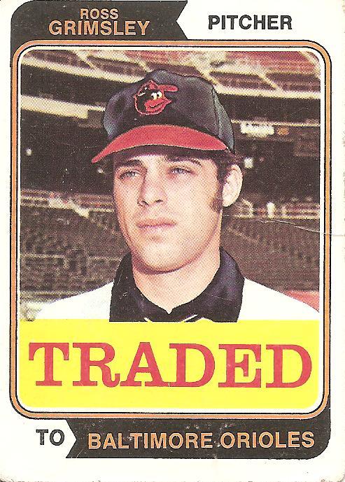 The point is this: I have been trying and failing all week to write something about this 1974 Ross Grimsley TRADED card. I had six pages of really shitty material even before getting into it about the pretzel nuggets, which, in case you were wondering if you missed something, do indeed have nothing whatsoever to do with the 1974 Ross Grimsley TRADED card except maybe that I bought both of them, one item a few days ago and the other thirty-six years ago.