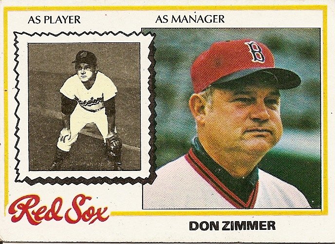 Zimmer’s cartoonish persona came into full bloom a couple decades later as he served as a coach on Yankees throughout their dynastic domination of the league in the late 1990s and early 2000s. Zimmer’s transformation from a Red Soxian figure, i.e., one upon whom gentle mockery is cast, to a fully vested member in the Yankee Pantheon of Beloved Greats (Zimmer something of a junior member of the Pantheon’s “Colorful” wing along with, among others, Yogi Berra, Casey Stengel, and Phil Rizzuto) helped further define the team he’d once managed: If even Don Zimmer could find glory at the very top of the baseball world, then the message was clear: you went to the Boston Red Sox to lose, and you went to the New York Yankees to win. It seemed absolutely set in stone, something that could never change.