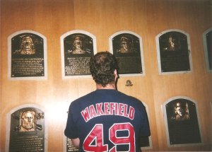 Tim Wakefield traveled along with me through those years. I liked that my team had a knuckleballer, but the player who would gradually become an all-time personal favorite to rival my childhood idol, Yaz, did so out of a kind of barely noticed constancy. He was always there. I began noticing that more often than was likely he’d be the starting pitcher whenever I’d make it to the game. He even followed me around the country. In 1999, I caught a game in Oakland, and there was Wake. In 2003, I caught an interleague game in Milwaukee, and there was Wake. Wake’s knuckler was flat and hittable that day, and the roof was closed, and the Brewers hit so many home runs in quick succession that a haze of gun smoke from the home run fireworks hung over the field. Bernie Brewer may have had a heart attack that day from hurrying so many times back to the top of his spiral slide, but he was saved when Wakefield, taking a turn at bat, was drilled in the ankle and had to be transported off the field on a golf cart. He sat upright on the back of the cart, his legs dangling, which seemed sort of humiliating somehow, as if he were being taken to a windowless room under the stadium where he’d be forced to read newspapers attached to long library rods. Wake recovered from the injury and later in the season pitched brilliantly in the playoffs all the way up until the last batter. I turned off the television the moment the ball struck by that last batter cleared the fence and I have tried, haplessly, to not give it a moment’s thought ever since.