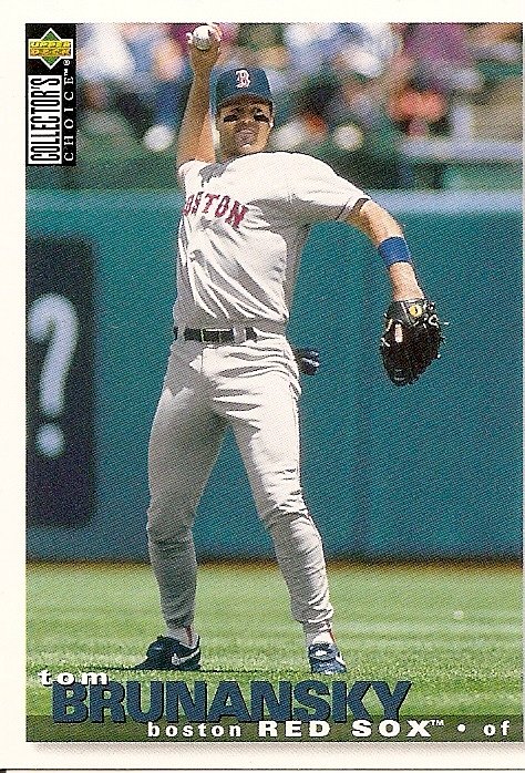 You can tell on the back of this card that Brunansky had come to the Red Sox once before, in 1990, also in the middle of the season, and as in 1994 this cheap flashy card combines his stats for 1990 into one line. You can’t estimate when he left the Cardinals for the Red Sox, nor see if he helped his new team with a hot streak down the stretch. If there’s a story about 1990, you won’t be able to connect to it in this card. But maybe that’s the story about 1990. Whatever it is, you won’t be able to connect to it.