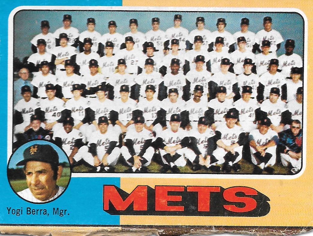 I’m glad, in the end, that I ended up with this card. It’s not like the Seaver cards I have, or think I have, where he’s either in the middle of his beautiful, powerful delivery or in a posed shot, glowering out at the viewer with the face of one of the sport’s most determined competitors. He’s not the star of the card. But he can be clearly seen, second row, third from right, and he’s smiling. He’s happy. This is the team that he came to define more than any player has ever defined any team. He’s together with them. A massive collection of players, it should be noted, far more than the number of players that would be on the active major league roster, as if the card’s other world-famous man, the one with the benevolently homely mug shown both in the inset and three figures to Seaver’s right, didn’t have the heart to dim anybody’s dreams of playing in the major leagues, and so for this moment there’s room for everybody, and this is OK with Tom Seaver, a pillar of winning and togetherness, and the seven-year-old holding this uneven card in his fingers got to bask in this togetherness that manifests with no other team more than this one, in the franchise for whom Tom Seaver earned one of his nicknames, The Franchise. As my friend Pete, a lifelong Mets fan, put it, when talking about Seaver’s death and more specifically about all the condolence calls he was fielding from friends about it: “It’s like a death in the extended family. And what are the Mets but one very big, very dysfunctional family?”