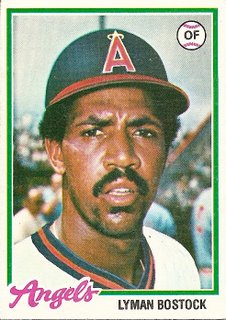 And today I’m back at it, trying to write about Lyman Bostock. In previous days of failing to write about Lyman Bostock I have discovered a lot of stuff on the Internet about Lyman Bostock. There are in fact entire tribute websites devoted to him, or at least one tribute website, plus many other articles and columns, most of them mentioning that his father was a Negro League standout, that he himself became a major league standout with the Minnesota Twins before signing as a free agent for the Angels in 1978, that he tried to return his first month’s salary to the Angels’ owner, Gene Autry, for getting off to a poor start with his new team, that this humble, selfless act was par for the course for Lyman Bostock, about whom stories of being extremely helpful and of going out of his way to be nice to strangers abounded, that after trying to give his salary back he subsequently rallied to bring his batting average by mid-September of that year to a fine .296, that while riding in the back seat of a car in mid-September he was shot and killed by a man who was apparently aiming for his ex-wife, a woman seated next to Bostock whom Bostock had met 20 minutes earlier, and that the shooter avoided prison time with an insanity plea and was subsequently released from a psychiatric hospital, a free man, seven months after he’d been admitted.