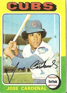 Who better to honor the St. Louis Cardinals for winning the 2006 World Series championship than Jose Cardenal? One of my Cardboard God fugue states–episodes in which I sat on the floor of my room and handled the cards like rosary beads, eventually drifting into a glaze-eyed trance–involved envisioning the brief, magical sliver of the past in which journeyman Jose Cardenal had actually been a Cardinal. It had happened before I was old enough to pay attention and had lasted only a year and a half, from 1970 to midway through 1971, right around the time that my parents began experimenting with a new kind of family structure, three adults instead of two, inspired in part by the ecstatic mandate of Woodstock and the Whole Earth Catalog, etc., to invent brand new modes of living. Though it didn’t end up lasting that long, many believed a new era was at hand, a golden time in which milk would pour into milk, God into God, Cardenal into Cardinal.