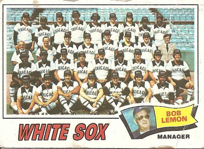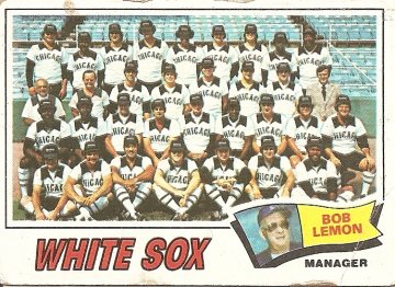 Incredibly, the White Sox won that game. They did not win many others that year and did not ever wear the shorts again, except, curiously, for this portrait for their 1977 team card. I’m not sure why they did this, but whoever made it happen deserves a medal. The whole team deserves a medal, in fact, for they and whoever had the idea for the pose in the first place are embodying the greatest aspect of the 1970s, one that goes hand in hand with its designation as the age of embarrassment: no matter what might come your way, embrace it. If you find yourself out in the middle of the action dressed in a shirt with a preposterously huge collar and your afro bulging like Mickey Mouse ears out from under your cap and your touchingly vulnerable knees as visible as those of a skirt-wearing member of the flag squad, embrace it. You only go around once, and most of that once is monotony and sameness, so you might as well celebrate the glorious mistakes.