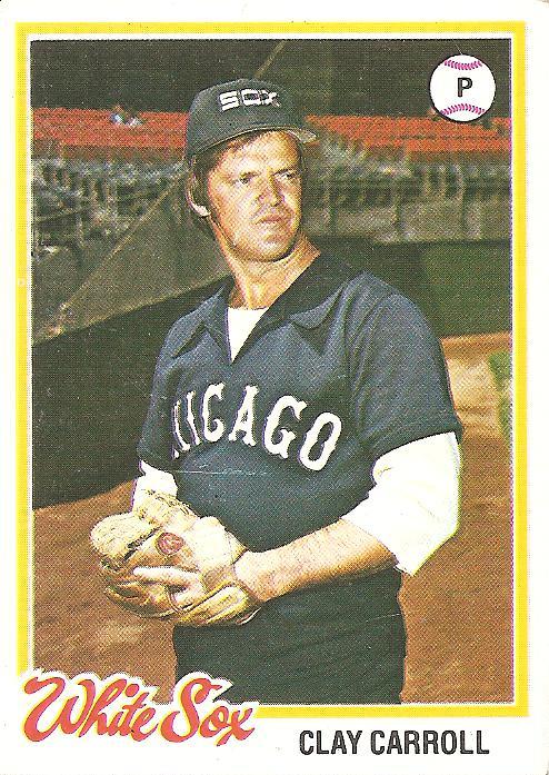 Clay Carroll, Clay Kirby, Ken Clay. By extension, Ken Brett, a little. For a while, when life is just getting started, things all kind of blur together into one big related mess. I went to Wrigley Field later in the day on Mother’s Day after calling my mom and popping some more Advil for my old-guy lower back, and there were a lot of mothers there and a lot of little kids, too, the game to them more of an exciting kaleidoscope than it was to me, who snapped most to the upper limits of my lukewarm attention whenever Jay Bruce came to bat because he happens to be on my fantasy baseball team. I’m saying it’s sort of fun when Clay Carroll and Clay Kirby and Ken Clay are all the same guy. Eventually, I figured out that Clay Carroll was a distinct individual, and in fact one of the premier bullpen guys in the National League for a while, and on top of that one of the great subjects of a baseball card, namely this one, the gnarled Southern veteran jammed inside the ludicrous Ye Olde Tyme Taverne garb of the Veeck-as-in-wreck 1970s White Sox. There’s something about the photo that makes it clear that, ridiculous as he looks in his giant lapels, Clay Carroll would be tough to face. He seems like someone who started drinking backwoods moonshine and killing wildlife with a crossbow at the same age when I was still blissfully unaware of the distinct differences between Clay Carroll, Ken Clay, and Clay Kirby (and Ken Brett, a little).