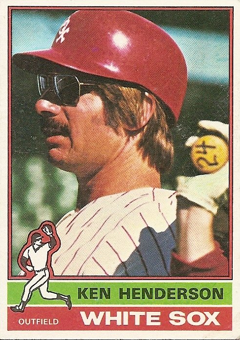 You’ve got one Hall-of-Famer at first, one would-be Hall-of-Famer at third, a catcher with better numbers than many of the catchers in the Hall of Fame, a gold-glove-winning all-star at shortstop, and three excellent, underrated run-producing machines (Singleton, Smith, White). Some would likely argue that Bump Wills is the most obscure member of this team, but to me he always stood out, mainly because of his name, but also because he was the son of a renowned major leaguer, had a notoriously odd baseball card, and was, during my most impressionable years, considered to have the potential to be an up-and-coming star. And he actually wasn’t bad for a few seasons in the late seventies, which happened to be the same time Ken Henderson, my choice as the least known of the all-1970s switch-hitting team, was bouncing from team to team, making little impact anywhere. The card here shows him just beyond the turning point in his career, when he went from a good young player with an admirably well-rounded game to an aging cigarette-ad fugitive gaping out at the action with a bat dangling limply from his fingers. He wears the first of six uniforms he would don over the next six years, never lasting beyond a season anywhere. He was the most itinerant of the members of the 1970s switch-hitting all-stars, and so in a way he’s the most fitting representative of that decade of often senseless transience.