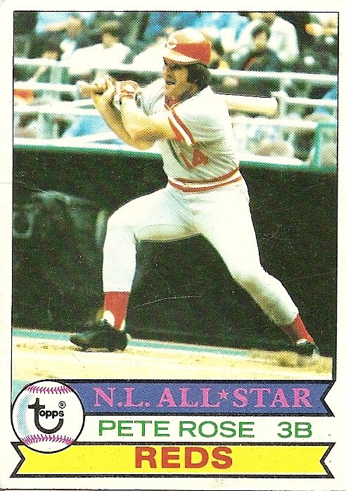 Happiness comes and goes. The man pictured here had been born and raised in Cincinnati, and had at the time of this photo played for 16 seasons for his hometown team, winning a Rookie of the Year award, an MVP award, two World Series championship rings, two Gold Glove awards, three batting titles, and 12 National League All-Star team selections. In later years he would win another World Series title with the Philadelphia Phillies; would, while playing for the Montreal Expos, become only the second man to amass 4,000 hits; and would bring his career full cycle by returning to his Reds (I married into a Cincinnati Reds family, and I can tell you that even now the team belongs to nobody so much as to the man pictured here) to break Ty Cobb’s record for career hits, a record long thought impossible to approach, let alone break. But all this seems, in light of this 1979 card, something of an aftermath. An epilogue. He would play for another team the season this card came out, which broke the spell of permanence that Pete Rose had cast, that feeling that he always had been and always would be playing baseball with all his might for the Cincinnati Reds.