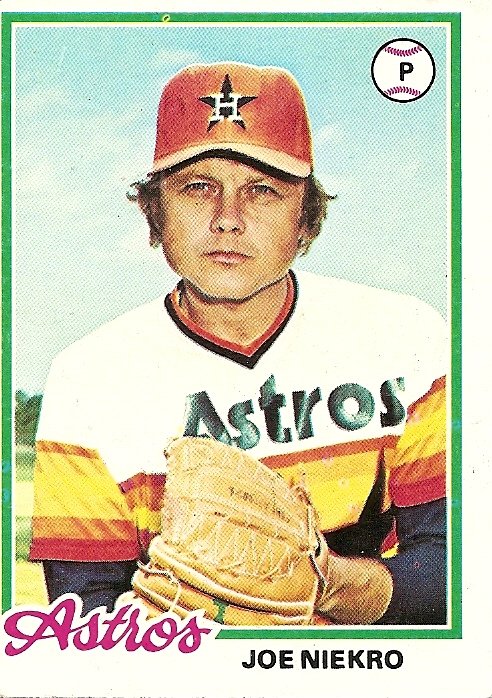 But though the ability to throw good knuckleballs seems to come and go almost without reason, there is also something about knuckleballs, and about life, that gives a late-blooming nobody such as myself hope. Consider Joe Niekro, seen here with a pensive look altogether appropriate for a 33-year-old 10-year veteran with a losing lifetime record. Perhaps Joe Niekro is wondering if the end is near. In fact, Joe Niekro at the time of this 1978 card was attempting to reinvent himself from a mediocre fastball-curveball pitcher to a pitcher who could, like his older brother Phil, rely on the most unreliable phenomenon in the baseball world, the knuckleball. And Joe Niekro did end up mastering the pitch as few others have, going on to win 221 major league games, most of them coming after the time when most major league pitchers have traded in their baseball cleats for golf shoes. The knuckleball offers the possibility of redemption.