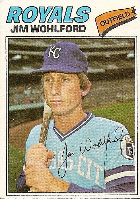 But he did not flourish under the strains of this commitment, and had he been paying close attention he could have noticed that the club, blooming from youthful prettiness to mature division-winning beauty, was growing distant, benching him more and more against righties, beginning to rely on him only occasionally, maybe to pinch-run for John Mayberry, maybe to pinch-hit against Tom Burgmeier. Finally, perhaps just before the photo for this 1977 card was snapped, the Royals, looking better than ever, looking stunningly good, walked up to Jim Wohlford and told him, “Jim Wohlford, sit down. We have to talk.”