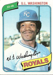 At the time Ozzie Smith and Garry Templeton were exchanging teams and destinies, I was probably more aware of a third young speedy promising African American switch-hitting shortstop, U.L. Washington. This idiosyncratic focus stems partly from the fact that I didn’t know as much about the National League in general, especially the teams (besides the Joe Torre Mets) that never got into the playoffs, such as the Cardinals and Padres. By the same token (whatever that means), I knew U.L. Washington in part because his team practically lived in the playoffs, but also because his name was U.L. Washington and U.L. stood for U.L. Of course, the main reason U.L. Washington had imprinted his name and image on my adolescent mind was that U.L. Washington played every inning while chewing on a toothpick.