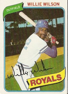 He entered the game as pinch-runner when the outcome was still in doubt. The announcers, Ned Martin and Jim Woods, instantly began speaking of him in almost hushed tones, and Wilson obliged their fearful and laudatory testimonials by stealing second, sprinting to third on a groundout, and flying home on a popup to shallow center by The Next Mickey Mantle, Clint Hurdle. Not incidentally, in retracing the details of this 7/21/78 Red Sox-Royals game at retrosheet.com, I was surprised to discover that Clint Hurdle had what may well have been his first, last, and only great day in the major leagues, knocking in six runs against an eventual 99-game-winning team. I have absolutely no memory of Clint Hurdle in this game, perhaps because he fades into his customary inconsequentiality next to Wilson, who seemed that day almost like a superhero, especially with his alliterative first and last names that recalled other superhero alter egos such as Peter Parker, Clark Kent, Bruce Banner, and Reed Richards. Willie Wilson. A lightning bolt in white and blue.