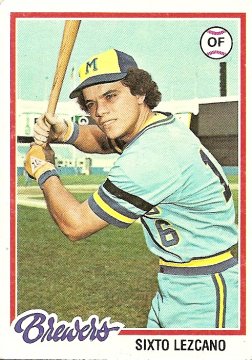 He was traded in December 1980 and so wasn’t around when the Brewers finally broke through with half of a division win in the strike year, then a trip to the World Series in 1982. In the World Series the Brewers fell to the Cardinals, the team Sixto Lezcano had been traded to, but he wasn’t on that team either, having been traded again to the Padres. The Padres made it to the World Series a couple years later, but by then Sixto Lezcano had been traded to the aging, fading Phillies. The Phillies, composed mostly of geriatric former members of the Big Red Machine, made an improbable run, or walker-limp, to the World Series the year Lezcano joined them, but even though he played well in limited action during the regular season he seems to have been left off the postseason roster (correction: as pointed out in the comments below, Lezcano actually played several playoff games that year). He contributed the next year as a competent part-timer (from playing Strat-O-Matic I know that he generally raked left-handed pitching) but within a year was out of the league for good.