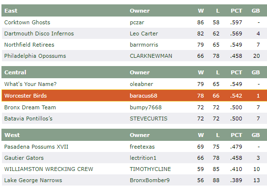 But anyway, for me, and maybe for you if you’re kindly taking the time to read this, with just 18 games left in the season, the Worcester Birds (whose saga starts here) sit one game out of first place in their division. I spent the last several days traveling with my family, so I haven’t passed along game notes in a while, but since the last time I posted the team has gone 17 and 10. Mark Fidrych has been up and down, able to record just one win in those 27 games, and he now is an extreme longshot to win 20 games, as he currently has 16 wins with a maximum of just 4 starts left in the season. He has to run the table. I’m hoping that with my original goal of getting him 20 wins evaporating, I’ll be able to get him to another imaginary milestone he never had in real life: pitching in the postseason. I want to imagine him in a game that matters. I want him and the rest of the team to keep going and going. To stay alive.