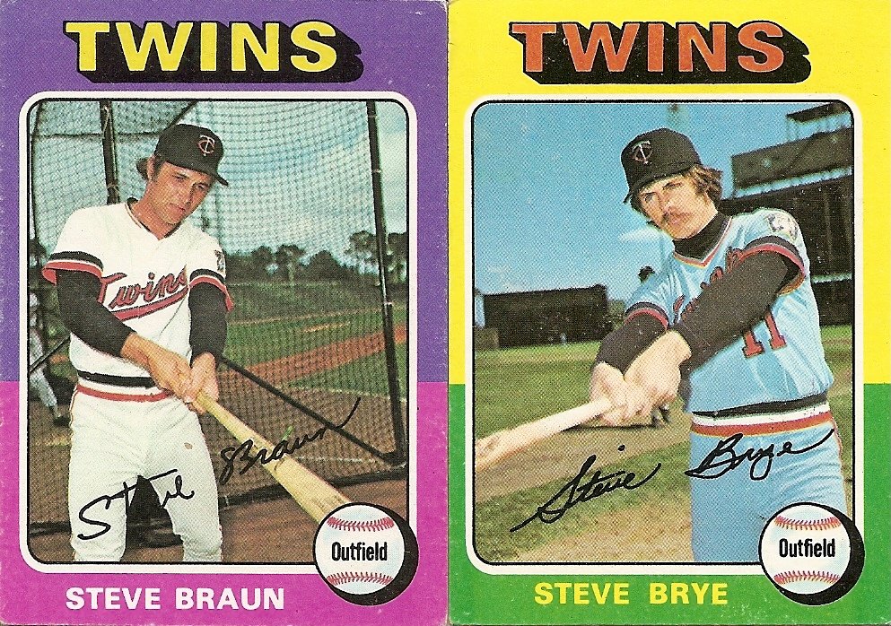 Now where was I? Who cares, really, at this point. Before I started weaving all over the road today I had it in mind that I was going to talk about the most aesthetically pleasing platoon in baseball history, that of Steve Brye and Steve Braun, and how the platoon and the mirroring 1975 cards which so aptly represent it make me wonder if being part of a platoon is the key to happiness in this annihilation-bound solar system. You do your part, someone else does their part, and together you make up a whole.