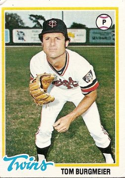 Tom Burgmeier was born August 2, 1943, in St. Paul, Minnesota (home of Macalester College). He signed his first pro contract in 1962, when he was 18. I suppose when I first obtained the 1978 card at the top of this page I may have read that information and vaguely envisioned a similar future for myself, a future which resembled my baseball-crazy present. But more likely I neither read that information nor foresaw myself signing a pro contract at 18. I didn’t really dream of being a baseball player when I grew up, because I never really thought I’d grow up. I’ve always held this evasive attitude toward the future, and I am always surprised when I notice that weeks, months, years have gone by. This may explain my stunned expression in photographs.