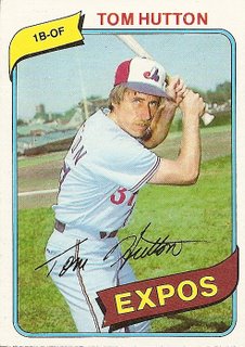 Step 2: Get in there. As shown by the instructional visual aid or holy icon or whatever you want to call Topps 1980 Montreal Expos card #427, “getting in there” can and often will, in most walks of life, fraught with ambiguity as they are, present some difficulties in the sense that there may seem to be no “there” there. Some in life are fortunate enough to be summoned unequivocally to the batter’s box, to have a clearly defined purpose, a path, a calling, but the Tom Hutton Way shows that you can get in there with your bat even if there is no batter’s box anywhere in sight. Look at Tom Hutton. He is most likely no closer than several hundred feet away from the possible flight of a pitched ball. Judging from the complete lack of other human forms in the photograph, Tom Hutton may, in fact, be on an entirely different training complex from that of his teammates, and so may be completely without hope of hitting a baseball while in his current stance. But he’s in there anyway.