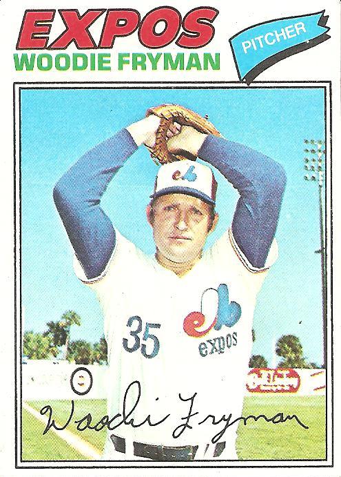 By the time Woodie Fryman joined the Expos for the first time, he’d been around a while and was no longer a young man. Had he ever been a young man? It seems like he may have somehow sprang from the womb already equipped with a paunchy full-grown build and melancholy eyes and the ability to change a tire, chip adequately out of a sand trap, and itemize federal tax deductions. This card doesn’t do a whole lot to dispel that notion, what with the information on the back that he was not signed to his first contract to play professional baseball until the uncommonly ripe age of twenty-five. By the time he arrived on this 1977 card, he was thirty-seven and had played for the Pirates, the Phillies, the Tigers, and, for the previous two seasons, the Expos, and before anyone but Topps employees had a chance to consider this offering from the 1977 series, Fryman would be moved once again, to Cincinnati, who would in turn, before 1977 was done, ship him to the Chicago Cubs. By the following season, 1978, Woodie Fryman had become so transient and anonymous in the baseball world—the opposite of his life away from baseball, where the lifelong farmer stayed rooted to the land in Ewing, Kentucky, where he was born—that he was bestowed the ultimate honor for anonymous transients: he was traded for no one in particular, i.e., a player to be named later. Then, just as it seemed that Woodie Fryman might never find a place in baseball that he could truly call his own, he switched from his long-time role as a decent, unspectacular starting pitcher with a 117-137 lifetime record to the role of an uncannily effective reliever whose ERA kept growing infinitesimally smaller the older he got. And because this quiet golden moment of Woodie Fryman’s long career came during the historical peak of the Montreal Expos, there would, so it seemed, forever be an association of Woodie Fryman and the Montreal Expos. He had finally found his place in the baseball world. So what happens when that place disappears?
