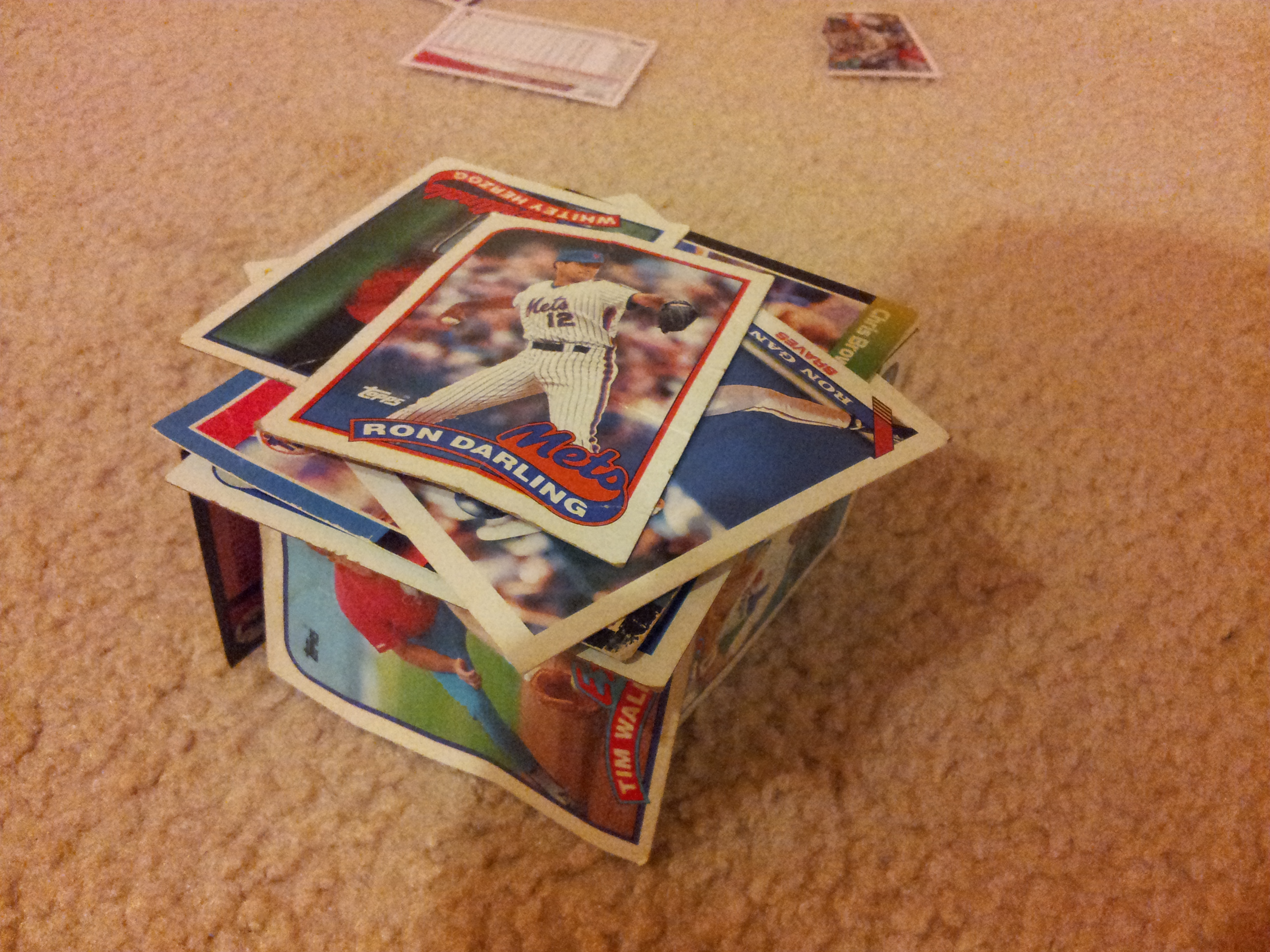 This would be terrible. I dread it, the possibility of it. Sometimes it makes me angry that there are people above me, always, always the possibility that a decision will be made above me to send me packing. So I go to work, work all day, do what I can. I come home. My son, almost two, now runs at me when I come home. Not to me but at me. We go down to the basement. He likes it down there. It’s carpeted, i.e., a softer landing spot for falling, and there are baseball cards and balls and my old guitar, which he likes to strum. Sometimes down there he orders me to participate in one or another of his rudimentary games. He’s above me, the one true boss of my life, so I have to comply. Other times he gets interested, inexplicably, in some random task that happens to be more solitary, such as dropping a pair of earphone buds again and again into the binder of a photo album jutting out from the bookcase. In those rare instances I either lie on the ground, exhausted, or, if I have some shred of life still in me, I fiddle around with his baseball cards, which are usually strewn all over the floor. Lately I’ve been building little houses of the cards. They don’t last long, these houses, because a certain party eventually gets interested and, even if he initially contributes to the house by laying a Dennis Rasmussen or Mike Proly on the roof, inevitably gives in to the joy of demolition.
