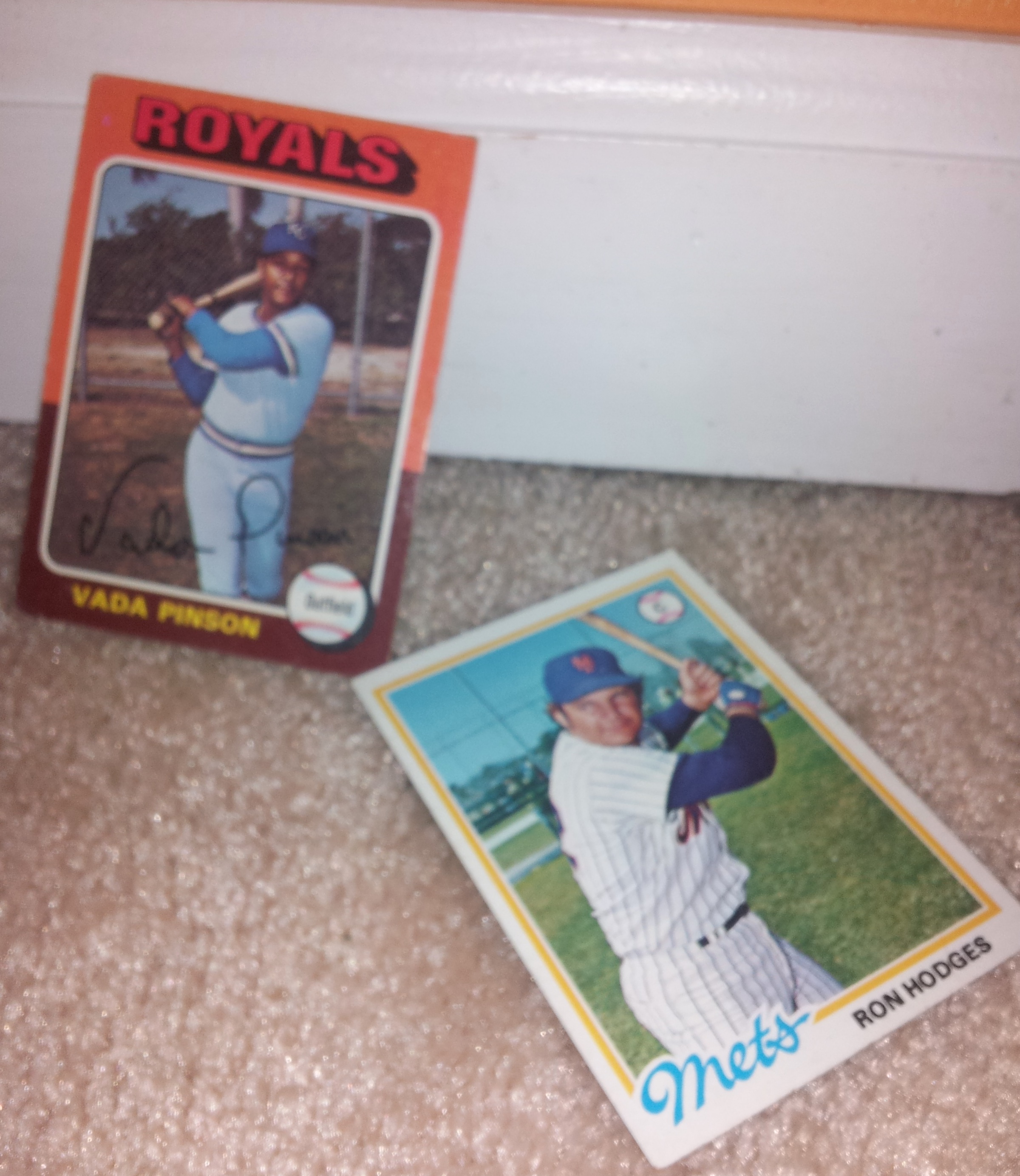 Tonight after my wife and I got our two boys to sleep I came down to our carpeted basement and cleared out a space in the thick tangle of baby toys and toddler toys and flipped these two baseball cards at the wall, best four out of seven.