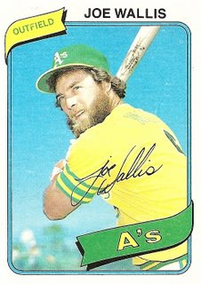 Not incidentally, Wallis didn’t always look like this. He broke into the big leagues in 1975 with a well-trimmed goatee and collected 16 hits in 56 at bats for a respectable .286 average. One of the hits even garnered Wallis his single shred of enduring notoriety as it broke up a Tom Seaver no-hit bid with two outs in the bottom of the ninth inning. In 1976 and 1977, Joe Wallis sported long incurving sideburns and a thick mustache and hit .254 the first year and .250 the next. That style of facial hair devolved into a disorganized stubble and mustache look in 1978, when his average sunk to .249 while he split time between the go-nowhere Chicago Cubs and the thoroughly gutted Oakland A’s. During 1979, as the stubble expanded toward the unruly beard shown here, Wallis’s average guttered to .141.