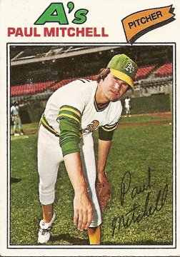 Point 2: I never had homework as a kid, at least none that I can remember. After going to a regular class for first grade I became a charter member of a rural hippie-founded elementary school classroom where there were no grades (as in grades awarded) and no grades (as in first grade, second grade, etc.), and the general idea was that we would flourish by growing wild, in whichever direction we wanted to grow. Anyway unlike children today I never had to lug a giant backpack back and forth to school and I had a lot of free time to disappear into the strange flat dioramas of cards such as this one featuring Paul Mitchell. I wonder how all those hours spent staring at these miniature rectangles of stopped time affected my development.