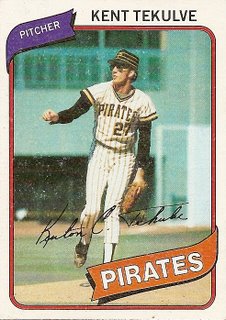 But back to my youth. By a year or so after reading Hondo, I had begun junior high and was beginning to experience the realistic dimensions of the life of a loner. I did poorly in school, my friends dwindled to a few misfits that I played chess with in the library, the basketball team I was on lost every game. Maybe I’ll delve into it all in much greater depth some day when I’m not running late to my proofreading job, as I am now, so for now all I’ll say is that Kent Tekulve, who wore glasses and threw underhand and didn’t seem to have anything at all in common with the other loud and wild disco-dancing coke-snorting home-run smashing “We Are Family” World Champion Pirates, was one of my favorite players ever. I sincerely wish I had time to write more about him, but as the television advertisement that uses the theme of living life to the fullest to sell intoxicants puts it, life beckons. I have to go take that train to my cubicle.