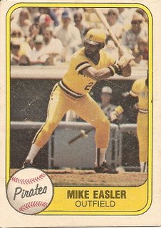 side of the front. This may not sound like a big deal but consider this: it’s now twenty-five years later and I’m still flipping over this Mike Easler card in such a way that his statistics are upside down. This has become merely annoying but it was downright anomic when I first tried to see who the hell this Mike Easler character was.