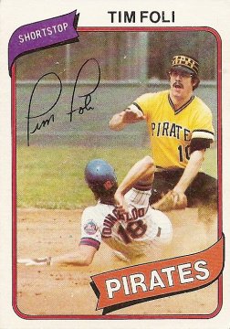 Tim Foli compiled a .283 career on-base percentage and a .309 career slugging percentage, numbers bested by, among many, many others, utility infielder Mickey Morandini, utility infielder Mickey Klutts, and left-handed pitcher Mickey McDermott. Foli did however frequently rank among the league leaders in sacrifice hits and most at-bats per strikeout, traits that qualified him in the logic of the day (still currently in vogue in some quarters) as a prototypical “number two” hitter. (Note: though his numbers would suggest otherwise, the term “number two” is not in this context the well-known euphemism for the more redolent of the two standard bathroom excretions, but rather is a reference to the second position in a batting order.) The fact that the Pittsburgh Pirates became league champions in 1979 while using a lineup that most commonly began its assault on the opposition with the tepid one-two punch of Omar Moreno and Tim Foli is a testament to good fortune (both Moreno and Foli turned in career years at the plate with decent if nowhere near optimal on-base averages of .333 and .335, respectively) and to the redoubtable talents of the other Pirates.