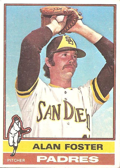 This particular example of low art appeared in 1976, selling for 25 cents with 14 other cards and a piece of gum in a waxy plastic wrapper. That year would turn out to be Alan Foster’s last in the major leagues, though he was also featured in a card in 1977. Here he wears the brown and yellow of the Padres, a homely juxtaposition to the backing blue sky, but he had come up in the system of the Los Angeles Dodgers, seemingly destined for a career entirely in blue, the life of a Dodger superstar. In 1967, with the Dodgers’ top minor league club, Foster had thrown two no-hitters, the first to ever do so in the history of the Pacific Coast League. This level of achievement did not transfer to the majors. In 1969 Foster surrendered a 506-foot blast to Willie Stargell, the first home run ever hit out of Dodger Stadium. The next year he was shipped to the Indians. He went from the Indians to the Angels to the Cardinals and finally to this last stop, the Padres.