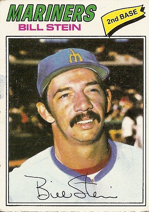 What does this have to do with Bill Stein? Well, not much. But first of all, at the risk of starting the first day of a hopeful new warmly inclusive era on a sour and mean-spirited note: whoo, he ugly. I only say this because I love my baseball cards, every single one of them, but most especially the ones featuring the luckless marginals, the nobodies, the drifters, the inglorious, the big-eared and mush-nosed and chinless and soggily-mustachioed and dim-eyed. The ugly. Hallelujah for the ugly! Today we spread wide our embrace to include every-fucking-body, the excluding myth of the Aryan suburban blond Mr. Joe America fatally punctured, hallelujah. And second of all, I mean the second reason I am talking about Bill Stein on this hopeful Yes We Can day, is that before this day was This Day it was, in the ever-evolving myth of the Cardboard Gods, Expansion Day.