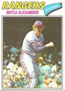 Doyle Alexander surely began learning this lesson around the time of this singularly odd 1977 card, the only card I can remember seeing in which an attempt was made to doctor the cap and uniform of a player in the midst of an action shot of sorts. In all other cases that I know of, the practice of altering the cap and uniform to place a player on a team he’d moved to in the offseason was restricted to posed shots, which were certainly easier to manipulate into a new version of reality without creating as much of a profound sense of a figure being divorced from his environment as is shown here on Alexander’s card. I guess it’s the smudgy altered cap against the Rembrandtian darkness in the background at the top of the picture that goes the farthest in making Alexander into a flimsy provisional interloper in this mortal coil. Before the previous year, Alexander had played for several years with one team, the Orioles, but from that point on he became noted for being a well-traveled guy, often going (at least in my memory) from one team to the next during pennant pushes, his veteran steadiness called on to shore up fraying starting rotations. He became a traveler. It started around the time of this card, in which he seems easily removable, as if you could flick him loose from the picture with one fingernail, and then he’d flutter to the ground like a feather, still locked in his ambiguous open-mouthed pose.