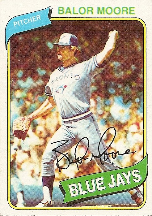 His body betrayed him the following year with a string of injuries that ultimately led to elbow surgery. He appeared in just eight games in 1974, and then was out of the major leagues altogether for the following two seasons. He managed to get into seven games for the California Angels in 1977, his meager contributions part of the tearful element of the Angels’ lament in those years: Tanana and Ryan and two days of cryin’. It must have been difficult to be a faceless addition to the two days of cryin’ for a guy who not that long before that appeared destined for the kind of power-pitching success of his two dominant Angel teammates. In 1978 he moved on to the Blue Jays, perhaps the only player in history to debut for the two Canadian major league expansion teams in their second years of existence. (He also bridged the Bob Bailey-Bob Bailor continuum as sturdily as anyone ever has, considering his first name and his status as teammates of both of the similarly-named early members of the Canadian expansion teams [Bailey the second acquisition of the Expos, after Don Bosch, Bailor the second pick in the 1976 expansion draft, after the Mariners took Ruppert Jones, who went 0 for 6 against Balor Moore, but I digress], but I digress, but what else is there to do but spiral from digression to digression [happily, I might add] when considering the entropic career of Balor Moore [and thank the gods for Balor Moore, for in his meandering insignificance there is the gateless gate to the interconnectedness of all]?)