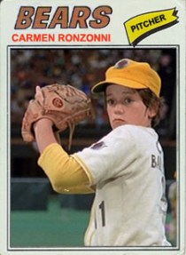 Still, maybe there’s a place for guys like Carmen Ronzonni. When I first saw the movie back in 1977, I was drawn first and most strongly to Kelly, Ogilvie, and Tanner, and I think I sided with the general feelings of the team regarding Carmen. Even though I hadn’t even seen the first Bears movie yet, I understood that Carmen was an outsider, and though (or maybe because) I saw some of myself in his tendency to use imitation in place of anything real, I kept Carmen at arm’s length. He wasn’t quite one of us. But as I’ve watched the movie more recently and repeatedly, I’ve come to think of Carmen as a deeply important member of the team in terms of the sequel. I see him this way not only because the team needs a pitcher and not even because his persona of recycled bullshit is a crystalline microcosm of that deeply American genre, the sequel. It’s this: maybe a guy saturated in stories can help things feel more like a story and not just part of some mundane conveyer belt toward the bone yard.