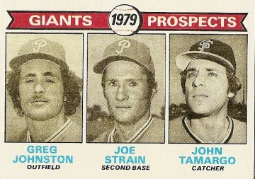 Here is a small, cheaply made cardboard flyer that the punk band Giant Prospects somehow managed to get into a few packs of Topps baseball cards in 1979. (Note characteristic typo—”GIANTS PROSPECTS”—at top.) From what I can deduce, the flyer was an ingenious (though perhaps misplaced) bit of guerilla-punk publicity intended to spread the word about the band’s would-be debut album, 1979, which for a myriad of reasons was never actually released.